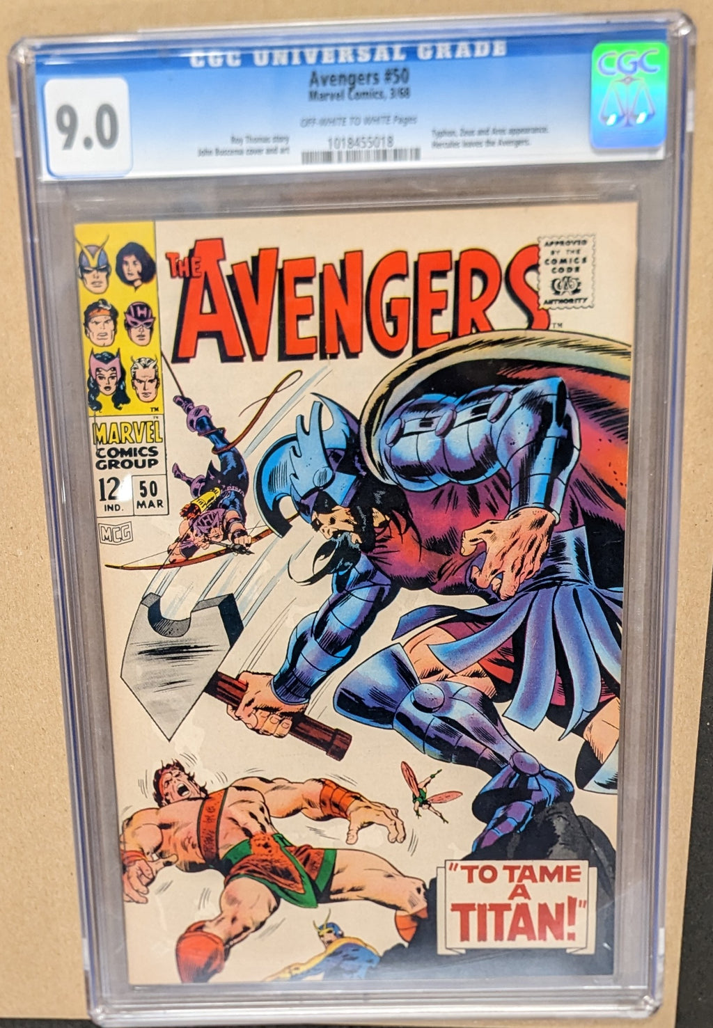 Avengers (1963 Series) #50 (CGC 9.0) Typhon, Zeus and Ares Appearance, Hercules leaves the Avengers (Cracked Case)